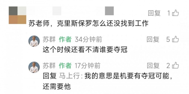 1月15日讯 近日,苏群在和网友互动时谈到了保罗。