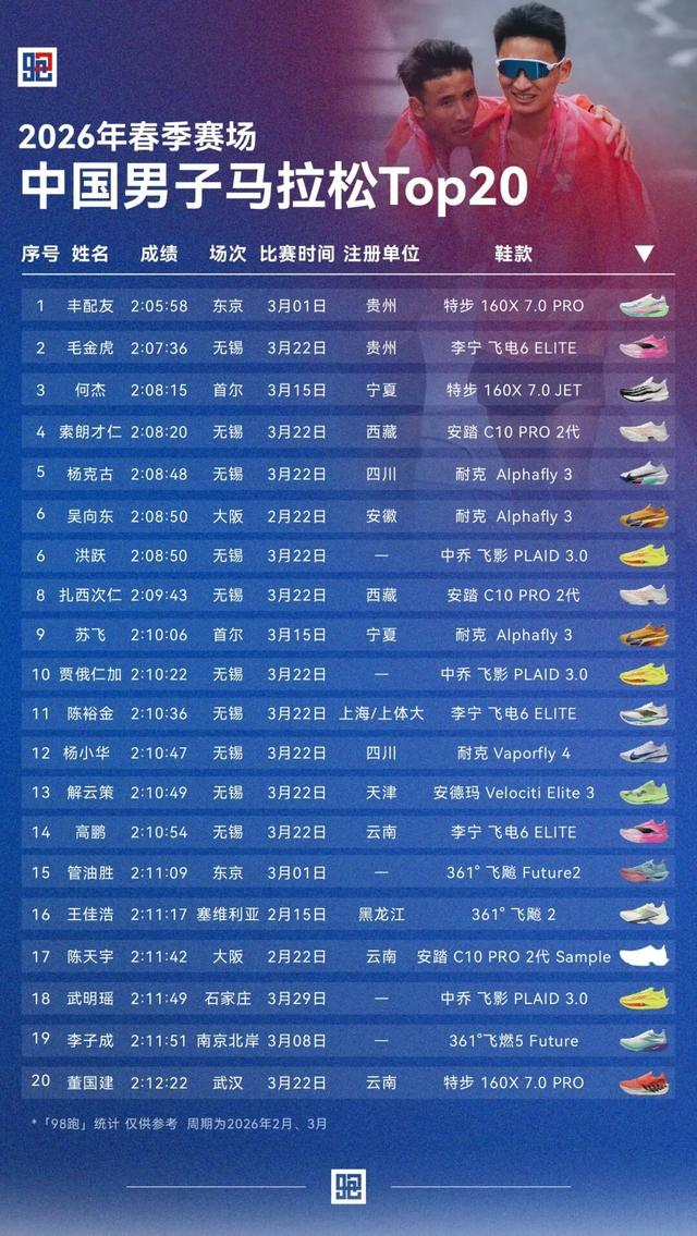 基于我们梳理的这份2026春季赛场中国男子马拉松佳绩榜单,一幅全新的竞争版图正清晰呈现在我们面前。本文「98跑」将带来春季赛场多维度复盘解析的男子篇,4月9日将推出女子篇——